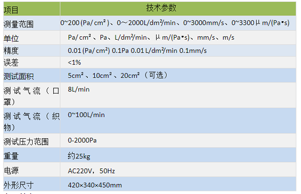 利用压差法的原理设计,将预先处理好的试样放在上下测量面间,在试样两侧形成一个恒定的压差,气体在压差的作用下,由高压侧透过试样向低压侧流动,根据流过试样的面积、压差和流量,计算出试样的透气度。或在试样两侧形成一个恒定的气流,记录试样两侧的压差再经过计算算出试样透气度。